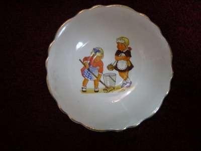 Item 1028 James Kent Longton Saucer Gold Edged James Kent Longton Saucer, made in England, with a cleaning detail. Nice item. Size: 5 3/4" across. Good condition. $10.00 Inquire, Reserve or Purchase Visa, MasterCard and PayPal Accepted.