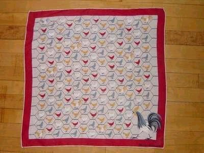 Item 1031 Vintage Novelty Rooster Hanky Vintage, signed novelty rooster motif hanky. Signed: Billy Kompa. Hanky Measures 15" X 14 3/4". Crisp, clear, great graphics depicting roosters with chickenwire. Hanky is unused. Mint Condition. $15.00 Inquire, Reserve or Purchase Visa, MasterCard and PayPal Accepted.