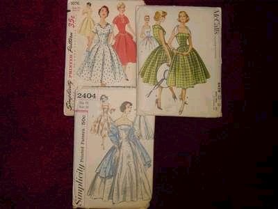 Item 1035 Bundled Set of (3) Fabulous 50's Dress Patterns Offering a bundled Set of 3 1950's Dress Patterns. All original with Instructions in Mint Condition, never used - uncut. 1st is Simplicity 2404, Formal with wrap, Size 12, Bust 32. 2nd Simplicity 1076 Short Sleeve Full Skirt Dress, Size 14, Bust 32. 3rd McCall's 4428 Full Skirt Dress, Size 12, Bust 32. Mint, unused, uncut. Inquire for pricing and purchase. Inquire, Reserve or Purchase Visa, MasterCard and PayPal Accepted.