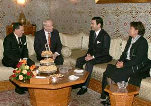 S.A.R. le Prince Moulay Rachid a reçu, vendredi au lieu de sa résidence à Rabat, M. Carl Wilhelm Stenhammar, président du Rotary International. Ont assisté à cette audience, Mme Zoulikha Nasri, conseiller de S.M. le Roi, et MM. Serge Goyteron, directeur central, vice-président du Rotary International, Ahmed Abdelouahab, Gouverneur du District 9010 Maroc-Tunisie-Algérie-Mauritanie et Thami Ababou, président de la commission de la Fondation du Rotary. |