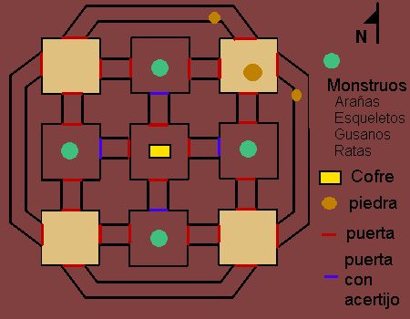 catacumbas (puedes aparecer en cualquera de los cuartos en amarrillo),