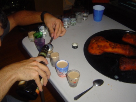 We did a line of buttery nipple shots for Anja, who was stuck in Colorado and could not attend. :(