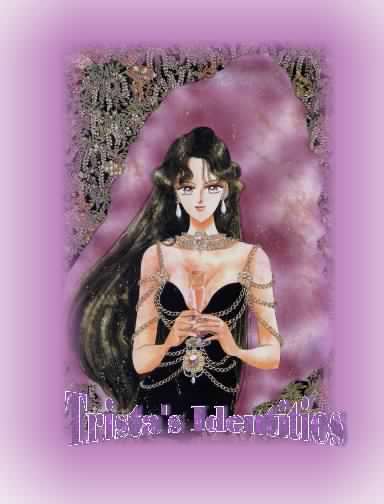 Trista is an extremely shy, quiet, mysterious person. This is very understandable because she hasn't had a lot of contact with people since she has been guarding the Time Gate as Sailor Pluto for eternities. She is very kind and generous, and very protective of Rini, or Small Lady as she calls her.