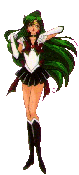 Sailor Pluto is the guardian of the Time Gate and she wields one of the Talismans, the Garnet Orb. She rarely comes down to Earth, she only does so when she is especially needed. She comes down in Sailor Moon S to help the outer soldiers find the Soveriegn of Silence and destroy her as well as stop Sailor Saturn from awakening, by whatever means possible. She shouts "Pluto Star Power!" or "Pluto Planet Power!" to become Sailor Pluto.