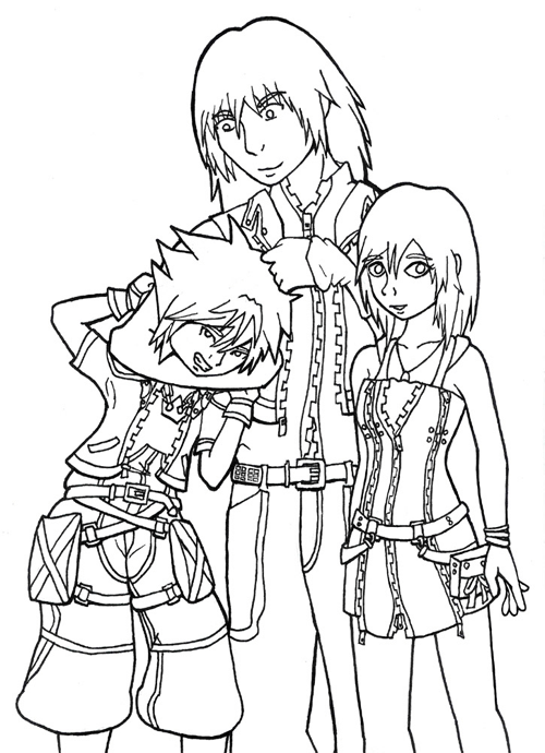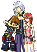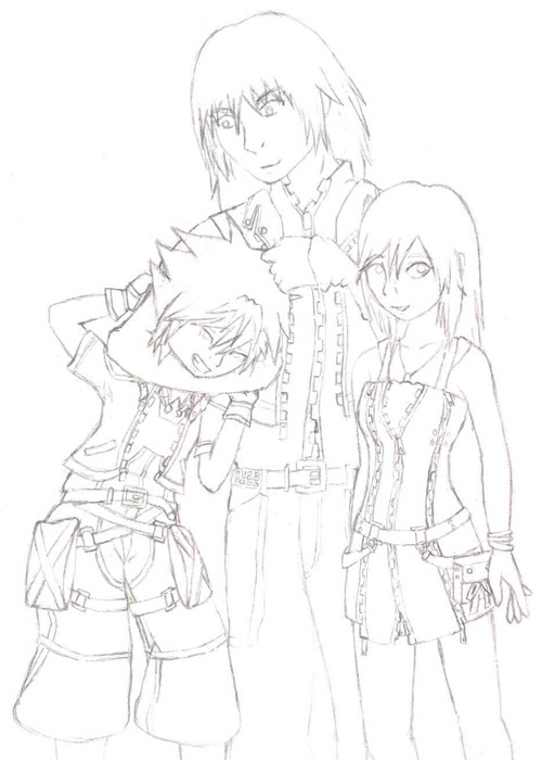 This is a greatly simplified version, but that is the basic process of how I make a finished picture. For those that do not recognize them, the characters in this picture are Sora, Riku and Kairi from Kingdom Hearts 2.