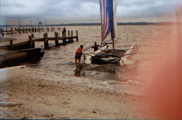 Three catamarans from the SMCC participated in the SMSA 2002 Fall Invitational Regatta. These included myself and my wife Lisa on my Nacra 5.5SL, Jeff and Donna on their Hobie 16, and Jim and crew on his Prindle 16. We made up the whole multihull fleet.