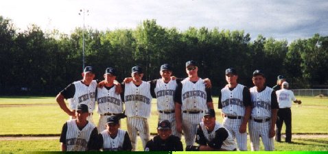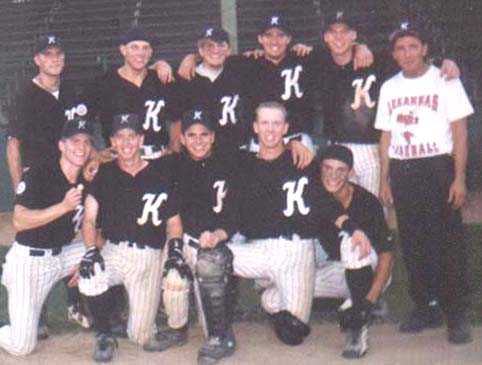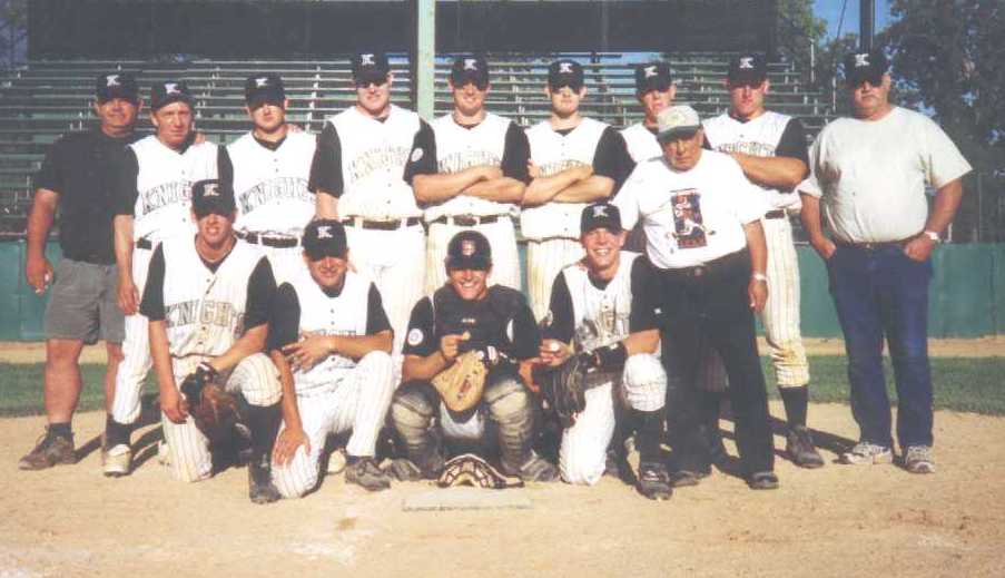 An exhausted 1999 Region 13C Champion Knights pose for a quick team