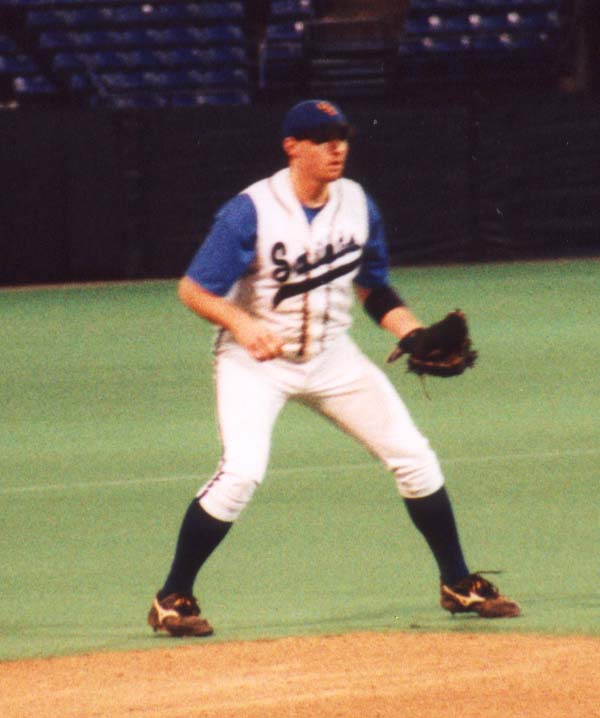 Jamie Steinberg playing 3rd base for the Saints in Minneapolis at the Hubert