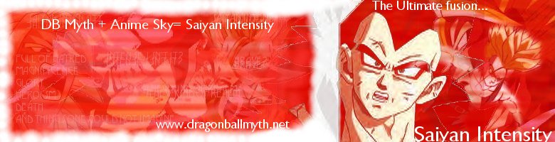 | Welcome to a new revolution in Anime. This is Dragon Ball Myth's Saiyan Intensity. We have every Anime you need. We have multimedia, information, and anything else you could think of. If you came here for DBZ, please head back to Dragon Ball Myth. This place is for every Anime besides DBZ. Please enjoy yoursleves here at Saiyan Intensity. |