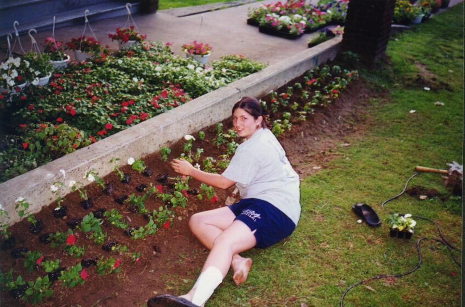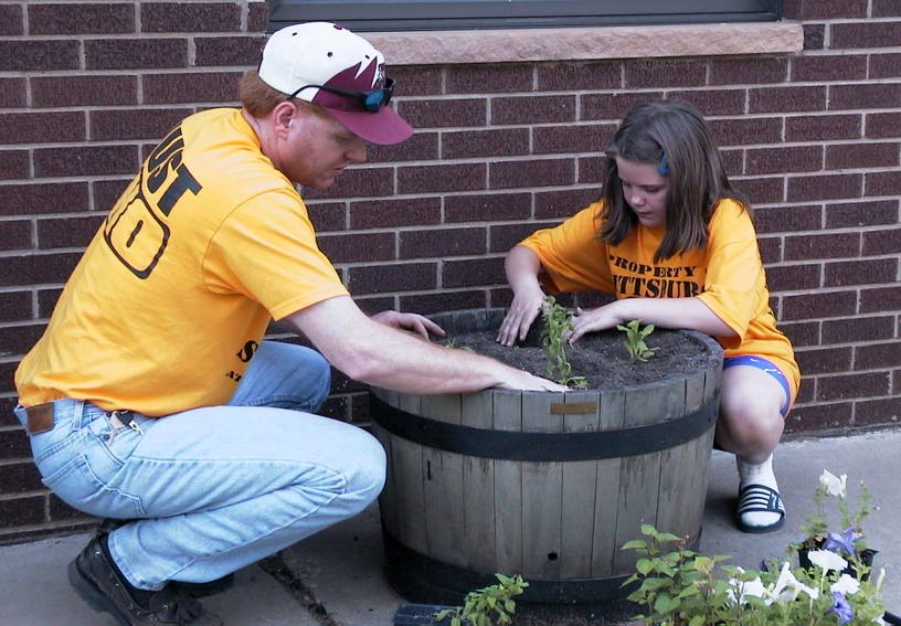 President Tim and daughter help with the "Buttercream Gang" planting.