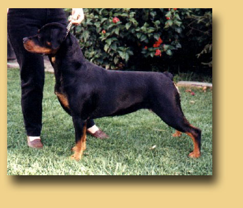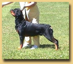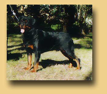 | Name: Ubersein The Gambler DOB: 31st March 1999 Bred By: Ubersein Rottweilers Hips: 2 ~ 2 Owned By: S & S Smith Elbows: 1 ~ 2 |