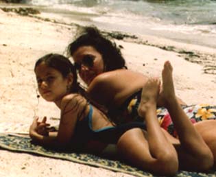 Mama y yo en una de las Mil Islas al sur de Indonesia