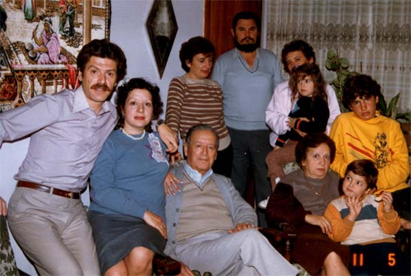 Mi familia materna, (de izq a der)papa, mama, mi abuelo Pepe, mi tia y mi yio Norma y Pipo, sosteniendome mi madrina Stela, mi abuela Amparocon Gerardo y mi primo Leo