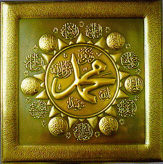 | A BEAUTIFUL IMAGE OF THE WORD MUHAMMED (s a w w) ENGRAVED IN COPPER | |||||||||||||||