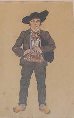 Print #33 L'uvergne, Cabrettaire Auvergnat, Young man about to play a