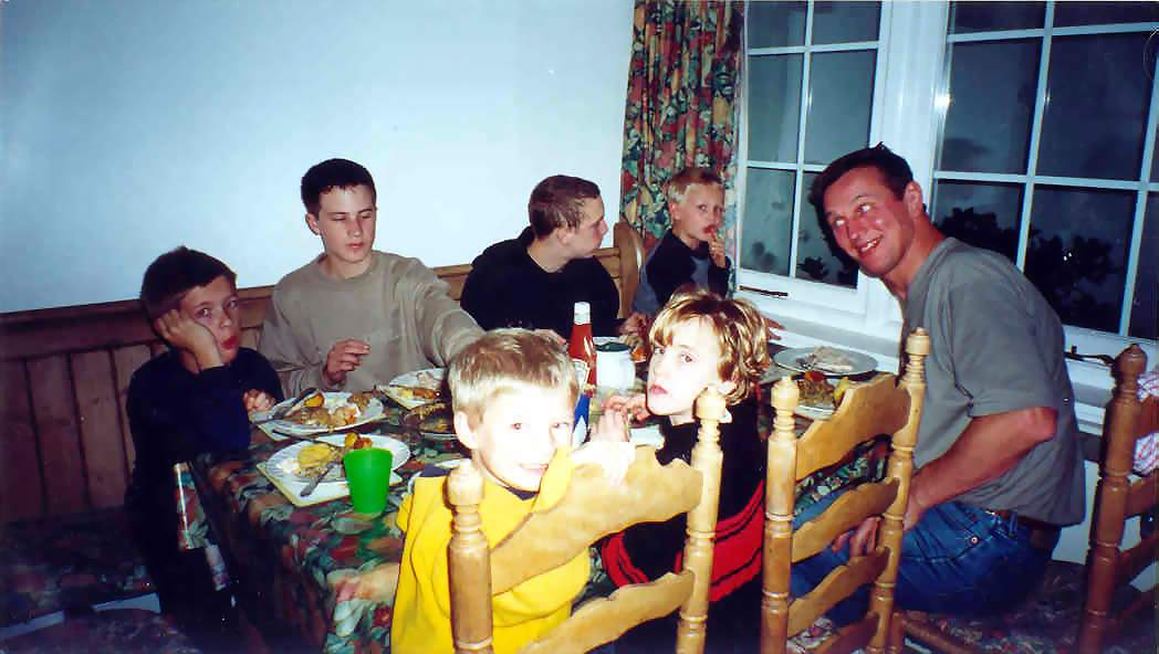 OK, here we go from left to right along the back row, there is NICK, JAMIE OLIVER er, hang on, no it's only BAILEY, ME, and JOHN. Along the front row it goes, OLLIE, SARAH, and me DAD. KERRY I assume took the picture.