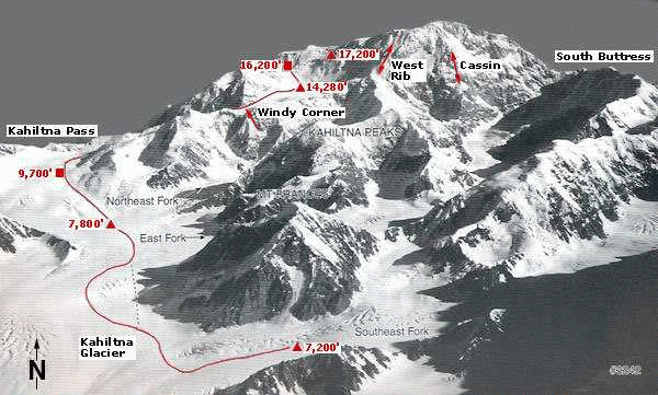11,000ft is not visible from this angle. Rather than making camp at 7,800ft and 9,700ft we camped instead at 8,500ft and 10,000ft. We single carried for the