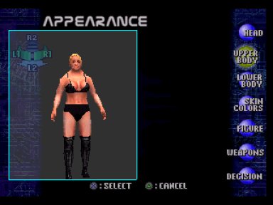 | *Name: Sable -Body Model +Type: B +Number: 2 -Head (Advance) +Face Nose: 76 (Type 1) Eyes: 71 (Type 1) (v:245, s:129, b:60) Mouth: 87 (Type 1) +Hair Base: 21 (Hair 1) (v:128, s:153, b:148) Back: 38 (hair 1) (v:120, s:138, b:144) -Upper Body (Advance) +Base: 5 (Chest 3) +T-Shirt Base: 58 (Chest 3) (v:128, s:0, b:56) -Lower Body (Advance) +Skin Base: 1 (Normal) +Feet Shoes: 5 (Normal) (l:73, v:128, s:0, b:0) +Tights: 36 (Normal) (l:33, v:128, s:0, b:88) +Kneepads Right: 1 (Normal) (v:128, s:0, b:68) Left: (Same as Right) +Accessories Accessories: 1 (Normal) (v:128, s:0, b:80) -Figure +Height: 594 -Weapon: Piped Chair |