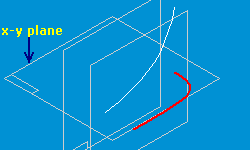 More More Curves - Top View Create another curve in a plane parallel to the x-y plane and passing through the bottom end-points of the earlier curves as shown in figure. | |
