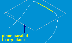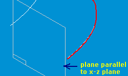 Parallel Plane Create a plane parallel to the x-z plane such that it passes through the end-points of the cross curves. See figure. | |
