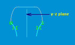 Mirror the cross curve Mirror the Cross Curve about the y-z plane as shown. | |