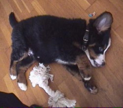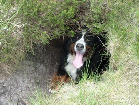 He is my heart ^^. Picture on the top is of him sulking cos' I won't give him more chicken. Picture on the bottom is of him cooling off in a rabbit hole :)