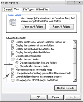 hidden files and folders" option. Then look for the "Hide