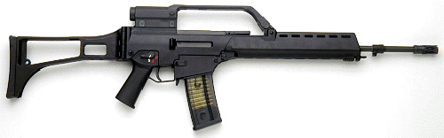 Heckler & Koch G36E-this assault rifle is currently issued only to members of the Leopard Guards formations in the Hamasaki Republic Army and will gradually replace some of the M16A2s in service with regular formations in all four branches of the Hamasaki Republic Armed Forces
