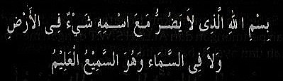Dengan nama Allah, yang dengan nama-Nya akan terhalanglah segala di bumi dan di langit, untuk menimpakan bencana, dan ia Maha Mendengar dan Maha Mengetahui.