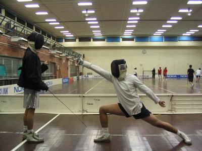 Fencing originated as the practice of swordsmanship to prepare men for duels and warfare. Fencing as an exercise based on speed and skill began when the longer, lighter rapier was developed in Italy during the 16th century. Because of the rapier’s length, opponents had to fight at a distance. Quick but controlled lunges, attacking the enemy with the point of the sword replaced cruder hacking techniques. But the rapier was not a good defensive weapon, so the fencer often had to use his gauntleted left hand to parry his opponent’s thrusts. Under Louis XIV in France, a change in fashion led to a new kind of sword. The rapier simply didn’t go well with brocaded jackets, breeches and silk stockings. So the French courtiers began wearing shorter swords. The court sword, as it was known, turned out to be an excellent weapon for fencing because it was both lighter and stronger than the rapier and could also be used for both defense and offense. As a result, the modern one-handed fencing technique was developed, with the left hand and arm used primarily for balance.