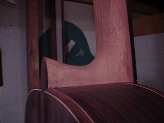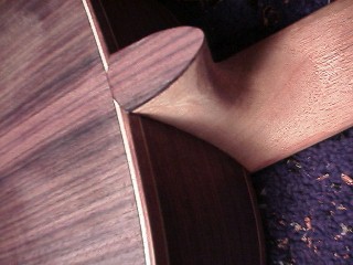 | The heel after the neck is attached to the body of the guitar. Notice how the shadows on the contours of the heel are smooth. |  |