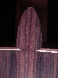 | The heel cap can be fit many ways. Here is one. It uses the same piece of wood as the back of the guitar, extending the grain pattern. |  |