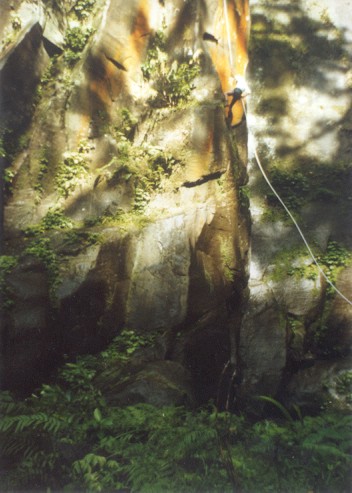 | * In February, the Four Original Members while in search for a passage to Sicaba from Gawahon, tried to climb the Bottleneck Ridge. In this climb, D. Ella almost fell to his death when he slipped while retracing the way up a 1,000-foot cliff that the party could not entirely descend. Luckily, he was able to clutch the trunk of a 'cabo negro' that hanged him in mid-air. (By this time, the name SINGARONG BACKPACKERS had already been adopted. * In March, Nathaniel Dichoso (5th member) and Federico Nacion (Honorary Member) joined the party that explored for a passage to Sulfatara from Tinagong Dagat across the jagged outback of Mt. Mandalagan. Setting 'firsts' in local mountaineering, the party discovered the top edge of the 300-foot Malirong Falls and underwent the nerve-wracking traverse across the knife-edged ridge of Tinagong Dagat. Rising above two sheer faces, the ridge is only a foot in width. * In a number of multi-day explorations in July, the Ella-Dichoso Exploration Tandem started exploring the strips of forest in Gawahon that had never been touched by other mountaineers before. In a 5-day exploration jaunt, the Tandem went though five days of continuous rain. * By August, the Tandem went through probing in Sicaba north of Gawahon. The duo discovered the Sicaba-Tuo Falls, the Triple-Drop Falls (in Sicaba-Wala) and finally the breach to the Eastern Interior or Ubak Valley, culminating a year of search. Capping its career, the Tandem set the unequaled 7-Day Gawahon-Sicaba-Binintigan-Gawahon Loop. * The 6th and 7th member respectively, Pedro Palabrica and June Cristal joined in a guided trek to Sulfatara, one of the most speactacular place in Mt. Mandalagan and the country at large in August. * Roger Sildres became the 8th member in December. He joined the two-man party that discovered Pulang Tubig Creek and Puting Tubig Creek in Ubak Valley east of the Gawahon-Calaptan Wall. (It is a mountaineering approach that precedes the guided BBMS trek across the area later in 1998.) |