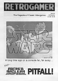 RETROGAMER 5 has features on Star Wars games, including the Parker VCS carts, the Atari coin-ops and the and various home conversions. Also in this issue is the Pitfall series, Bubble Bobble and the Speccy classic TLL. It also contains a profile and actual interview with Dropzone and IK+ creator Archer Maclean. This issue is reviewed in the November 1996 issue of NMS.