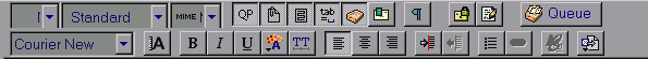 La de abajo (optativa) posee: tipo de letra, tamaño, negrilla, cursiva, palabras subrayadas, color de las letras, atributo tipo máquina de escribir, los 3 siguiente tipo de alineado de párrafos, correr margen izquierdo, volver hacia la izquierda dicho margen (descorrer), para agregar enlistados bulleted (pelotitas), crear hipervinculos a un texto, eliminar atributos en el texto seleccionado que le otorgaron aquellos seleccionados por esta barra optativa, insertar objeto