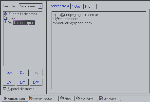 Si pulsamos alguna [ To: ; Cc: ; Bcc: ] automáticamente
