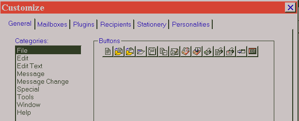 1- File --------------- incluye los siguientes botones: nuevo archivo texto abrir un archivo de texto existente abrir el attachment cerrar presentación windows guardar pantalla activa de windows con un nombre guardar pantalla activa de windows como stationery enviar mensajes ya compuestos y que están en espera chequear por nuevos mensajes imprimir mensaje activo vista previa de la impresión cambiar impresora u opciones importar mensajes, carpetas y/o libreta de direcciones de otras aplicaciones salir de Eudora