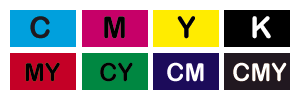 CMYK เท่านั้น จากนั้นสร้างแถบสีขึ้นมา 8 แถบ โดยแต่ละแถบเติมสีดังรูป