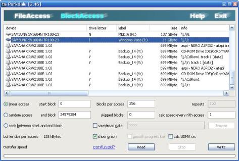You can adjust the blocksize used to access the disk.