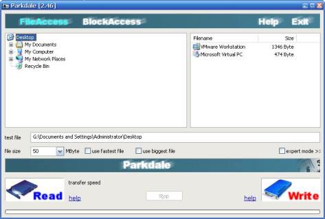 You can start a speed test on disks, cdroms and network shares. You get the transfer rate in KB or MB per second.