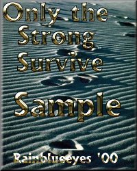 These are the four awards I am currently offering. Feel free to apply for any of them, but not more than one, Please. The only two I award to the same person are the Simple. Beautiful. Love. Award and any one of the others. The Expression At It's Best Award is for websites with exceptional and original content. The Beautiful Site Award is for websites that I believe the authors have conveyed themselves in openly and honestly, pouring thier hearts into. The Lightning Site Award is for websites that the authors have put a LOT of work into some kind unique content. The Simple. Beautiful. Love. Award is for websites that display their love for a boyfriend, fiance, or husband. It must be some type of decation page of you as a couple or of your sweetie, as well as have some small story of your relationship or how you met. The Only The Strong Survive Award is for sites that display a good cause that is being supported, or a hardship that has been endured. The pages must contain appropriate content (I do not tolerate pornography or predjudice!), have no broken links, loading time must be reasonable, and you Must Sign My Guestbook. If
