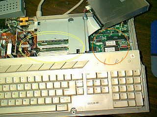 shielding removed. I've marked the SIMMs in the yellow circle and