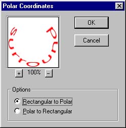 2. Choose filter/distort Polar coordinates . choose the radio button rectangular to polar.