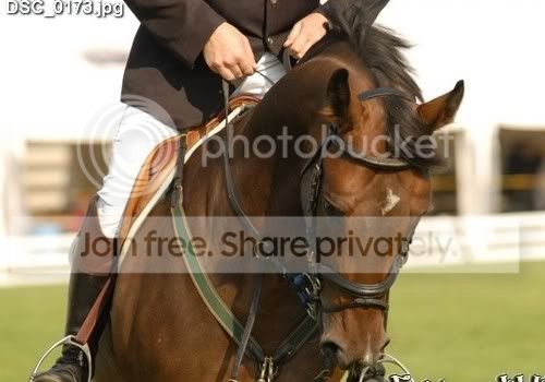 Mielenkiintoinen ilmestys. Yleisesti ottaen tämä ei näyttänyt hyvältä, mutta kuulosti siltä (puomit siis eivät kolisseet). Lillin meno näytti hieman samalta kuin kameliratsastuskisoissa kun tamma pää heilui melkein korkeammalla kuin ratsastajan päänuppi. Kun tamman eteen pistettiin muutama isompi este, huomasin, että tämä otus todellakin sopii esteille huonosta tyylistään huolimatta. Tällä yhdistelmällä on siis kannattamatonta yrittää pokata tyyliratsastuskisoista sen suurempaa mairittelua. Lilli oli hieman hidas, joten jouduit käyttämään pohjetta ja välillä jäit puristamaan liiankin kanssa. Tyylisi oli kyllä Lillin tyylin täydellinen vastakohta, sillä näytit olevan tammasi selässä kuin kala vedessä. Olit hienosti mukana kummallisissakin hypyissä. Rataa hypätessä teillä meni hienosti, välillä nopeat kaarteet tuottivat kamelinomaisesti liikkuvalle tammallesi ongelmia ja kerran olitte kellahtaa hiekkaankin. Lilli kulki kuitenkin esteiden ylitse mukavasti, hyvässä temmossa ja hyppäsi kiitettävästi. Se yritti hienosti koko ajan. Saat olla tyytyväinen tammaasi!
