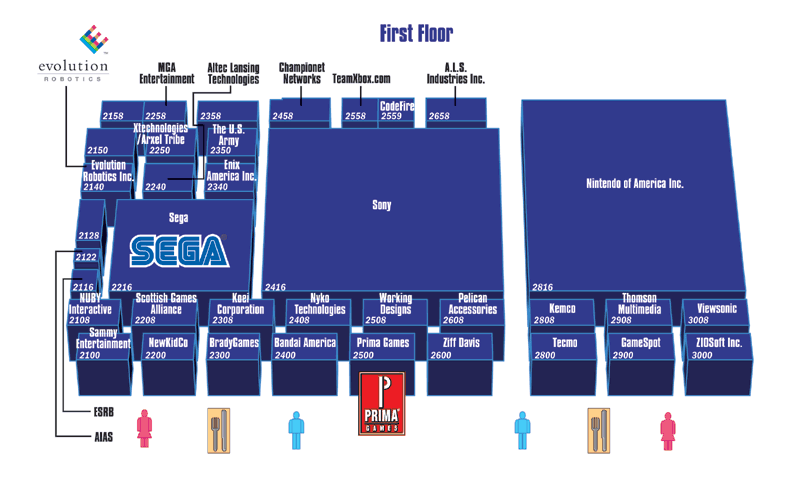 - The floor plans for this year Electronic Entertainment Expo(E3) was released earlier today. According to the floor plans, Nintendo will have the largest booth space of all of them. Sony will have a booth slightly smaller, with Sega having the 3rd largest booth. Microsoft will have a relatively small booth somewhere in the back.