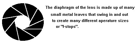 Here's the confusing part, each f-stop lets in exactly half/twice as much light as the f-stop next to it. However, they are usually numbered f/1.4, f/2, f/2.8, f/4, f/5.6, f/8, f/11, f/16, f/22, f/32, f/45, f/64. Depending on what type of lens you have, you'll probably have a different range of f-stops. They seem totally unrelated and give no clue as to their relationship. The number stems from a mathematical relationship which isn't important right now. Just try to remember that as you open the aperature up one stop you are letting in twice as much light (the area of the aperature becomes twice as big), as you stop down the opposite happens. Another easily confused fact about f-stops. f/1.4 is the largest aperature from the above list. As the value of the f-stops increase the aperature decreases. It is an inverse relationship. f/64 is a very small opening and actually has 1/2000th of the area of f/1.4.