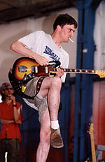 The Haifa Blues Festival, set against a backdrop of trawlers, cargo ships and cranes on the docks of the city's port, has become an annual event. Unfortunately, owing to budgetary constraints and security concerns, the festival was cancelled in 1996, but optimism is expressed for an eventual revival of the tradition. Past festivals, which drew thousands from Israel and abroad, featured top artists: Bob Dylan, Ray Charles, Nick Cave, John Mayall, Blur, Paul Young and Sheryl Crowe were among the international performers. Local artists included David Broza and Mashina. The 3-day yearly springtime festival, characterised by an abundance of "blues, breasts and beer" are living proof, as one visitor to this website observed, that despite prevailing misconceptions of Israel as a country plagued by terror and turmoil, "there's still room for plenty of fun in the Holyland." Photography on this page Copyright © Ron Solomon / Yediot Aharonot, 1989 - 97. All rights reserved. No unauthorized use or reproduction without prior consent. Click images to view enlarged high-resolution photos. |