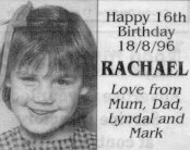This appeared in our local newspaper on Rachael's sixteenth birthday. Isn't she cute?