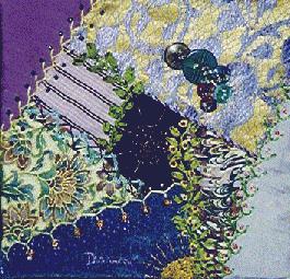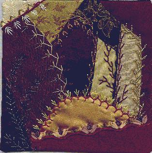 ![]() | Block for Elizabeth Wiegand I had fun with this block. Elizabeth wanted a block in burgandy, black, and gold. I enjoyed working with these colors. I used Nancy Eha's Crazy Beading on this block. I like to include a rising sun on many of my swap blocks to represent my name. The sun on this block was pieced from fabric using my curves by machine method. Click to see the block Elizabeth made for me. |