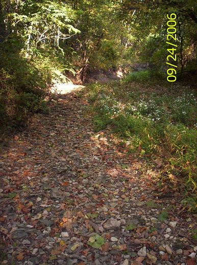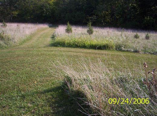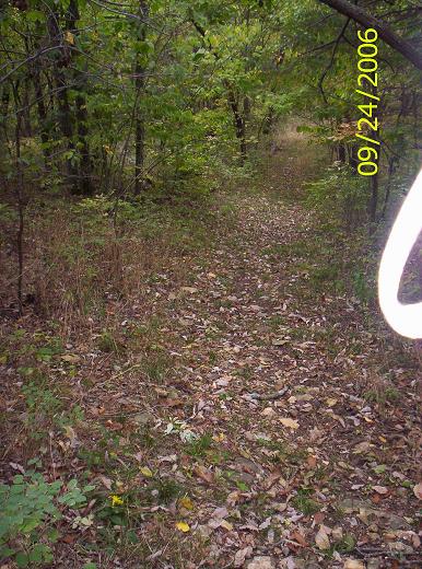 Trail from the Packard House to the woods. The dark end of the trail is a mulberry archway into the woods. I'll have to get an actual picture of the arch some time. It's kind of neat.